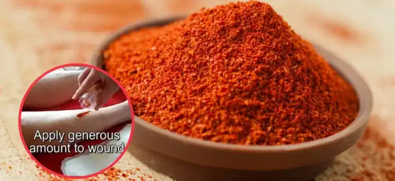 La pimienta de cayena es un estíptico potente. Ayuda a la coagulación de la sangre tanto interna como externamente. Aplique una capa gruesa directamente sobre el corte para heridas pequeñas. Las heridas grandes se benefician tanto del uso externo como interno.